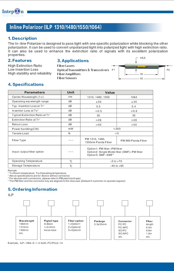 Inline Polarizor(ILP 1310/1480/1550/1064) |